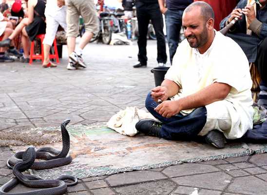 apresentações com tambores e serpentes.